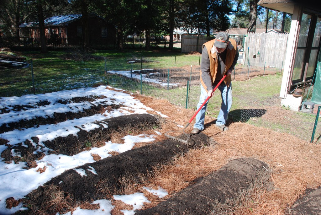 Now that we have a garden plan, it’s time to amend the soil and prepare it for planting. During the last season, we kept the compost bin churning, which left us with high-quality organic compost. We lightly work the compost into the soil, not going more than three inches deep. After that, we topcoat the compost with an all-natural organic cow manure product like Black Kow. This application of compost and manure provides nutrients, moisture, and microbes for the beds, which will help the plants grow strong and healthy. Once we’re done, we’ll leave the garden alone until it’s time to plant. Happy gardening!
