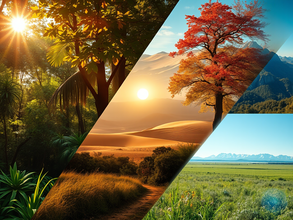 A biome is a large area of land that has specific types of plants, soil, weather, and animals. There are different kinds of biomes, like the tropical rainforest, which is hot and humid and has many different kinds of plants; the desert, which is very hot and dry with few plants; the temperate deciduous forest, which has four seasons and a moderate climate; the grassland, which mainly has open areas filled with grass and few trees; and the tundra, which is cold with limited plant life and a short growing season.
