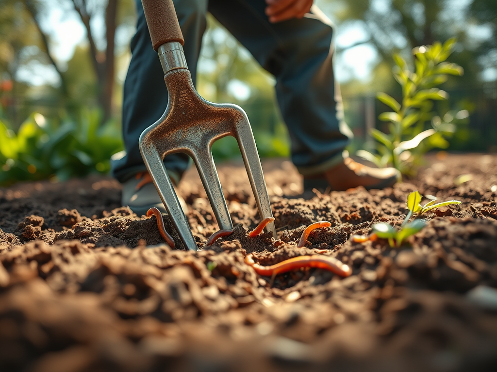 We lightly cultivate the soil to improve aeration and drainage. We use a garden fork but avoid deep tilling, as this can disrupt the soil structure and harm beneficial organisms like earthworms. We break up compacted layers while retaining the upper soil structure.