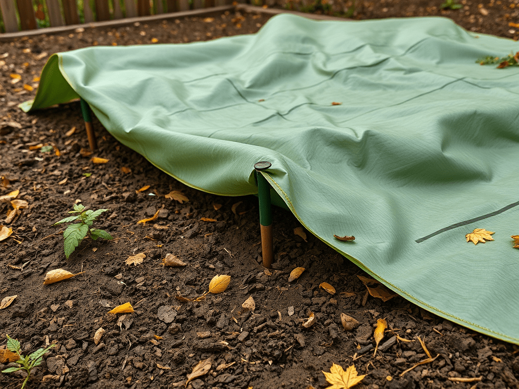 This year, we chose not to plant cover crops, so we will cover the soil with landscape fabric to shield it from heavy rains that can cause erosion. We will ensure that the covers are securely anchored to avoid them blowing away in the wind.